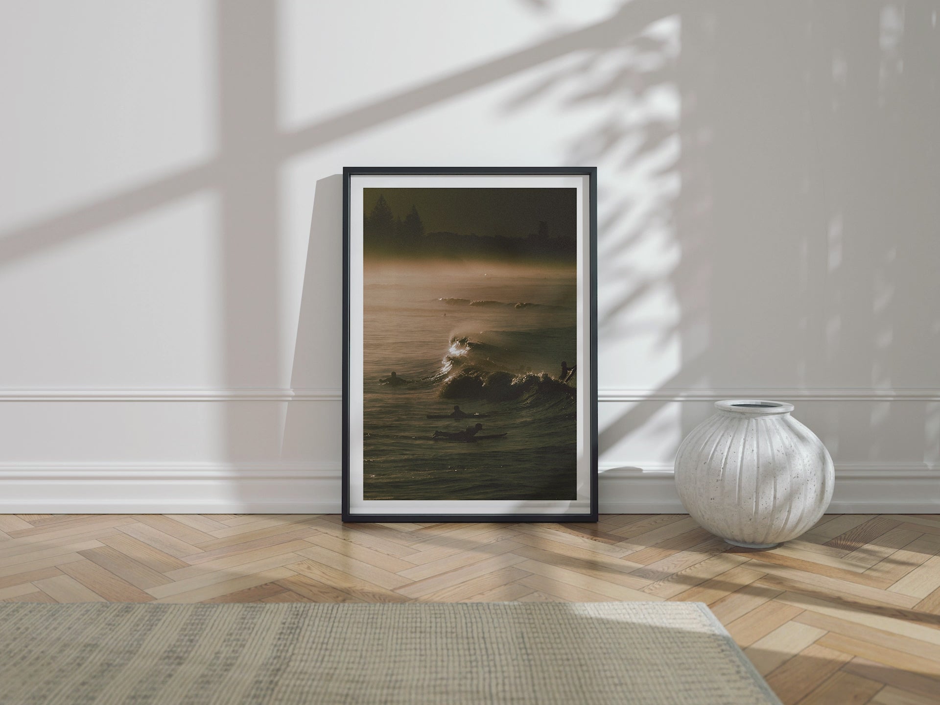 Frames: Available in black, white and natural wood finish. The images found on our product page are mockups. Each natural wood frame will differ slightly in the color and grain pattern. Each frame is handcrafted with a sheet of UV-blocking acrylic glass and comes fully assembled and ready to hang by wire on your wall.