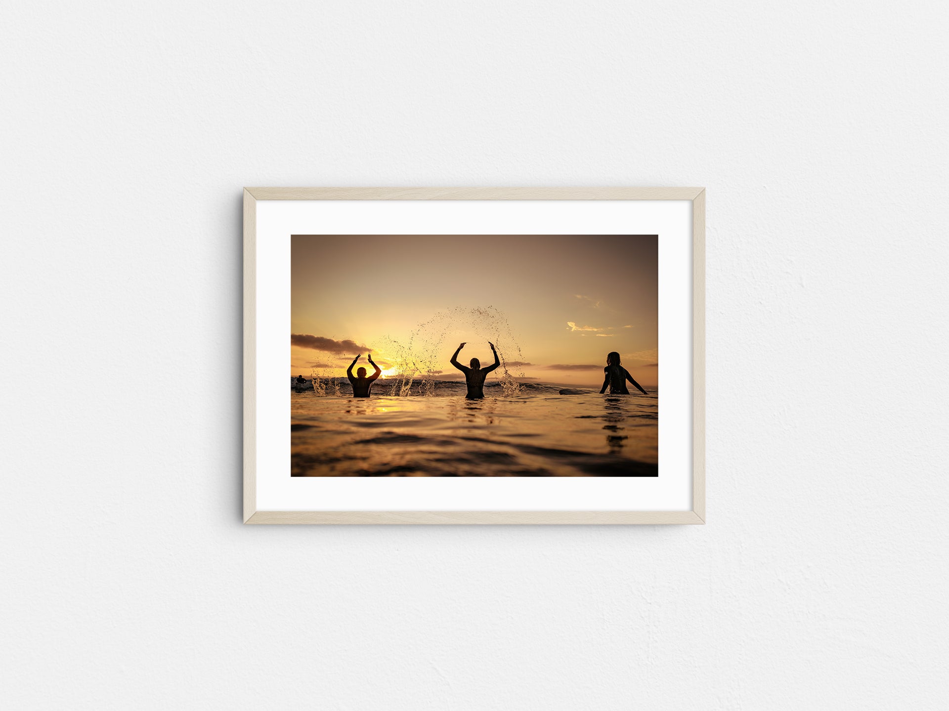 Frames: Available in black, white and natural wood finish. The images found on our product page are mockups. Each natural wood frame will differ slightly in the color and grain pattern. Each frame is handcrafted with a sheet of UV-blocking acrylic glass and comes fully assembled and ready to hang by wire on your wall.