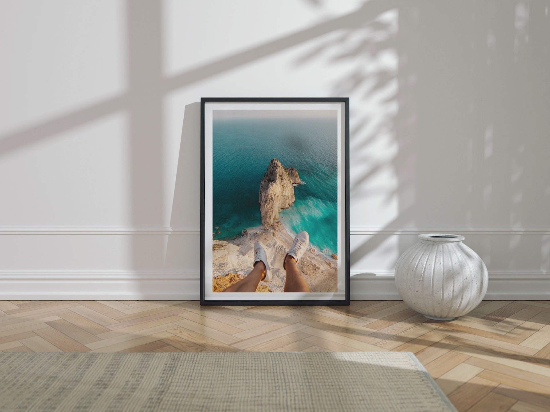 Frames: Available in black, white and natural wood finish. The images found on our product page are mockups. Each natural wood frame will differ slightly in the color and grain pattern. Each frame is handcrafted with a sheet of UV-blocking acrylic glass and comes fully assembled and ready to hang by wire on your wall.