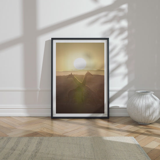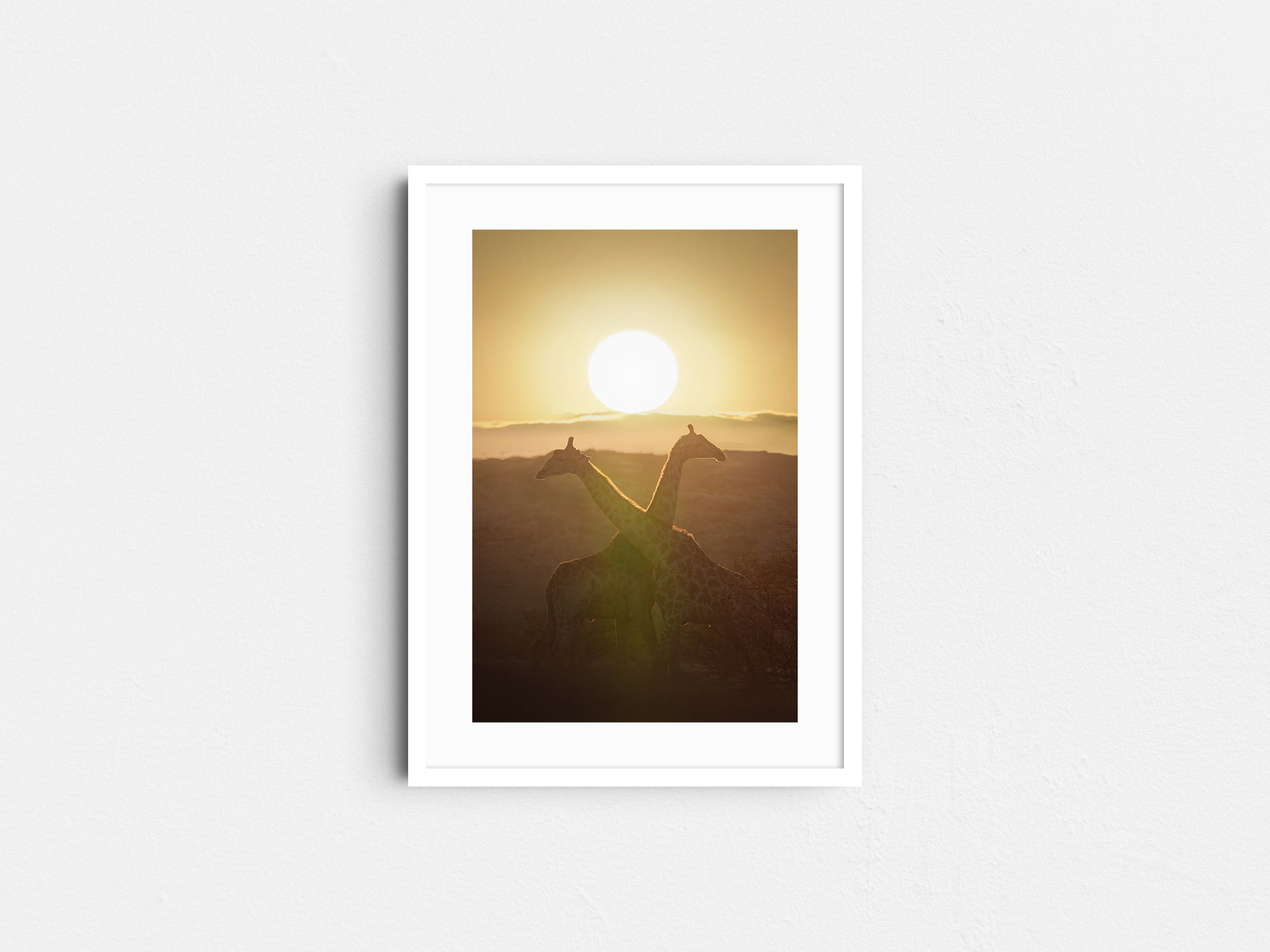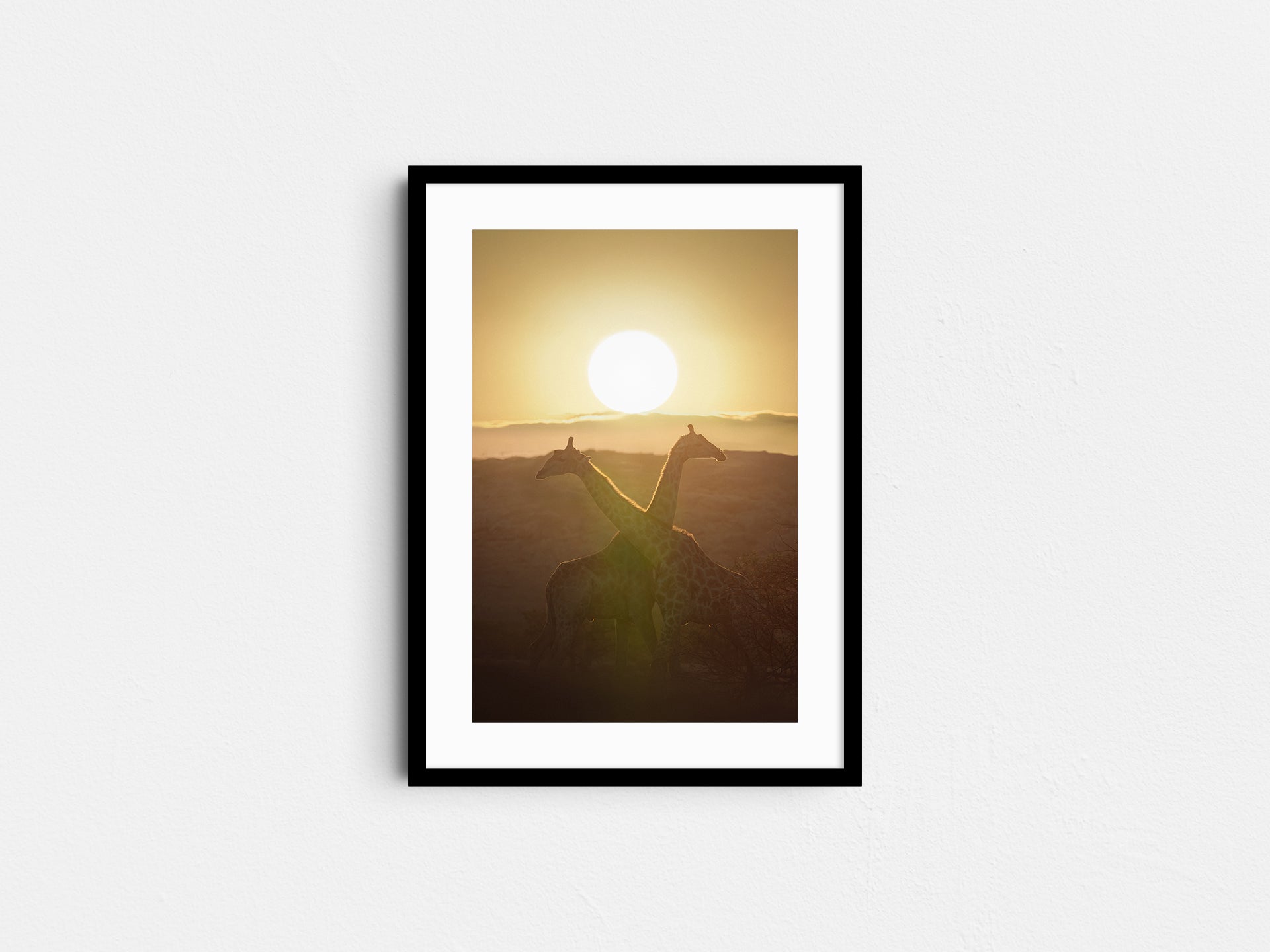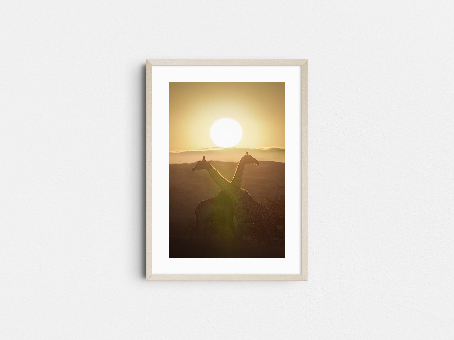 Frames: Available in black, white and natural wood finish. The images found on our product page are mockups. Each natural wood frame will differ slightly in the color and grain pattern. Each frame is handcrafted with a sheet of UV-blocking acrylic glass and comes fully assembled and ready to hang by wire on your wall.