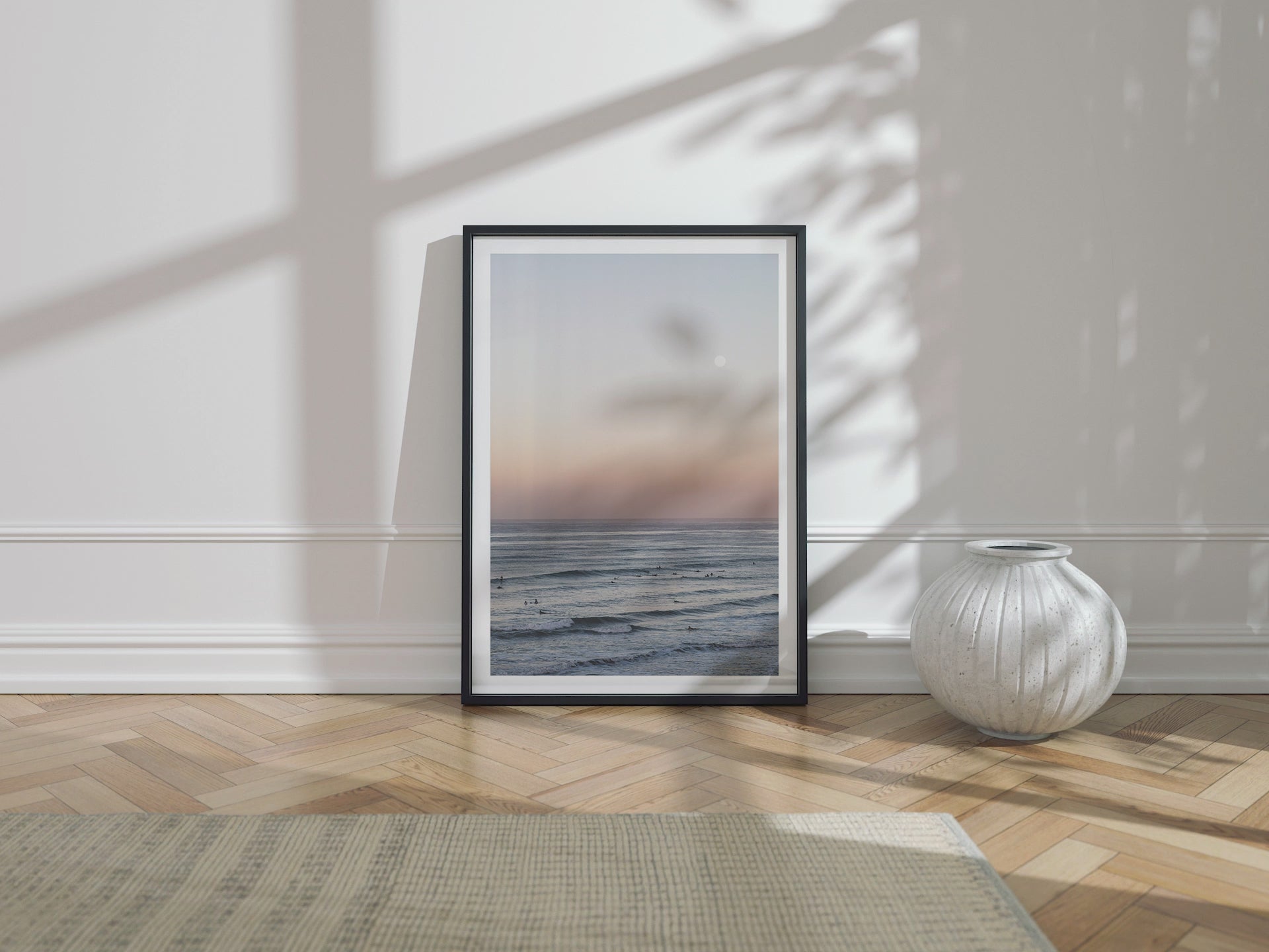 Frames: Available in black, white and natural wood finish. The images found on our product page are mockups. Each natural wood frame will differ slightly in the color and grain pattern. Each frame is handcrafted with a sheet of UV-blocking acrylic glass and comes fully assembled and ready to hang by wire on your wall.