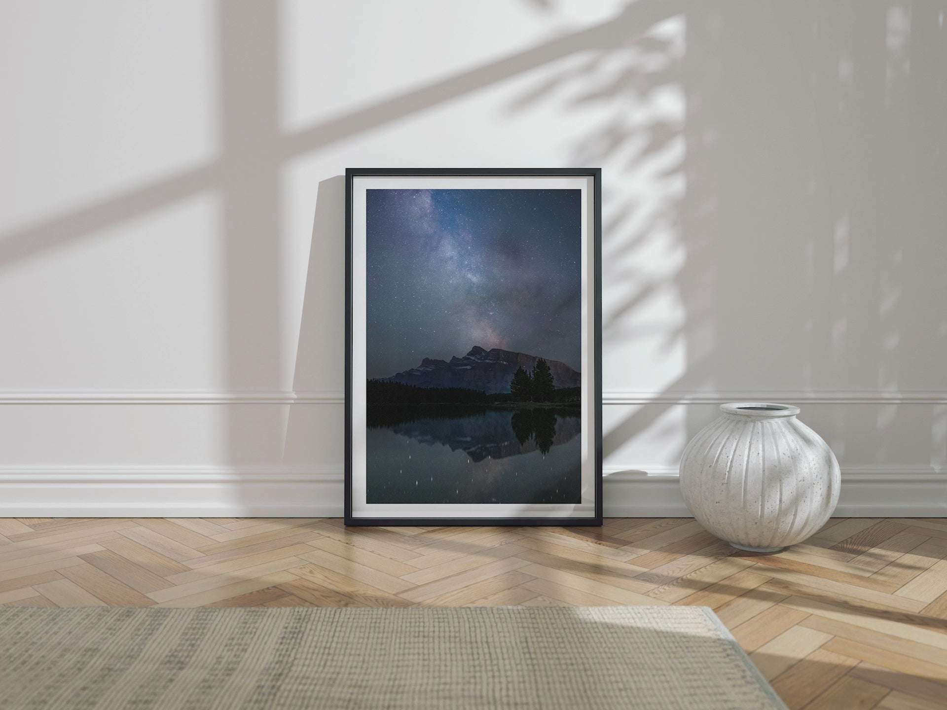 Frames: Available in black, white and natural wood finish. The images found on our product page are mockups. Each natural wood frame will differ slightly in the color and grain pattern. Each frame is handcrafted with a sheet of UV-blocking acrylic glass and comes fully assembled and ready to hang by wire on your wall.