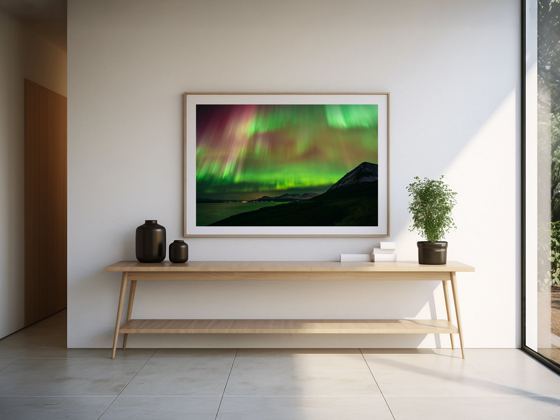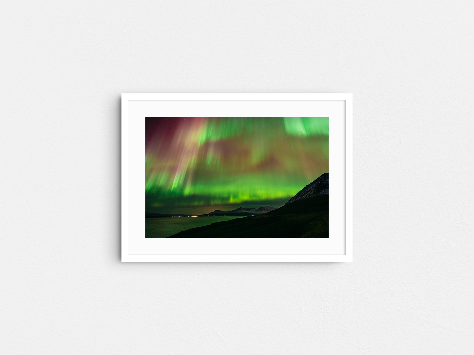 Frames: Available in black, white and natural wood finish. The images found on our product page are mockups. Each natural wood frame will differ slightly in the color and grain pattern. Each frame is handcrafted with a sheet of UV-blocking acrylic glass and comes fully assembled and ready to hang by wire on your wall.