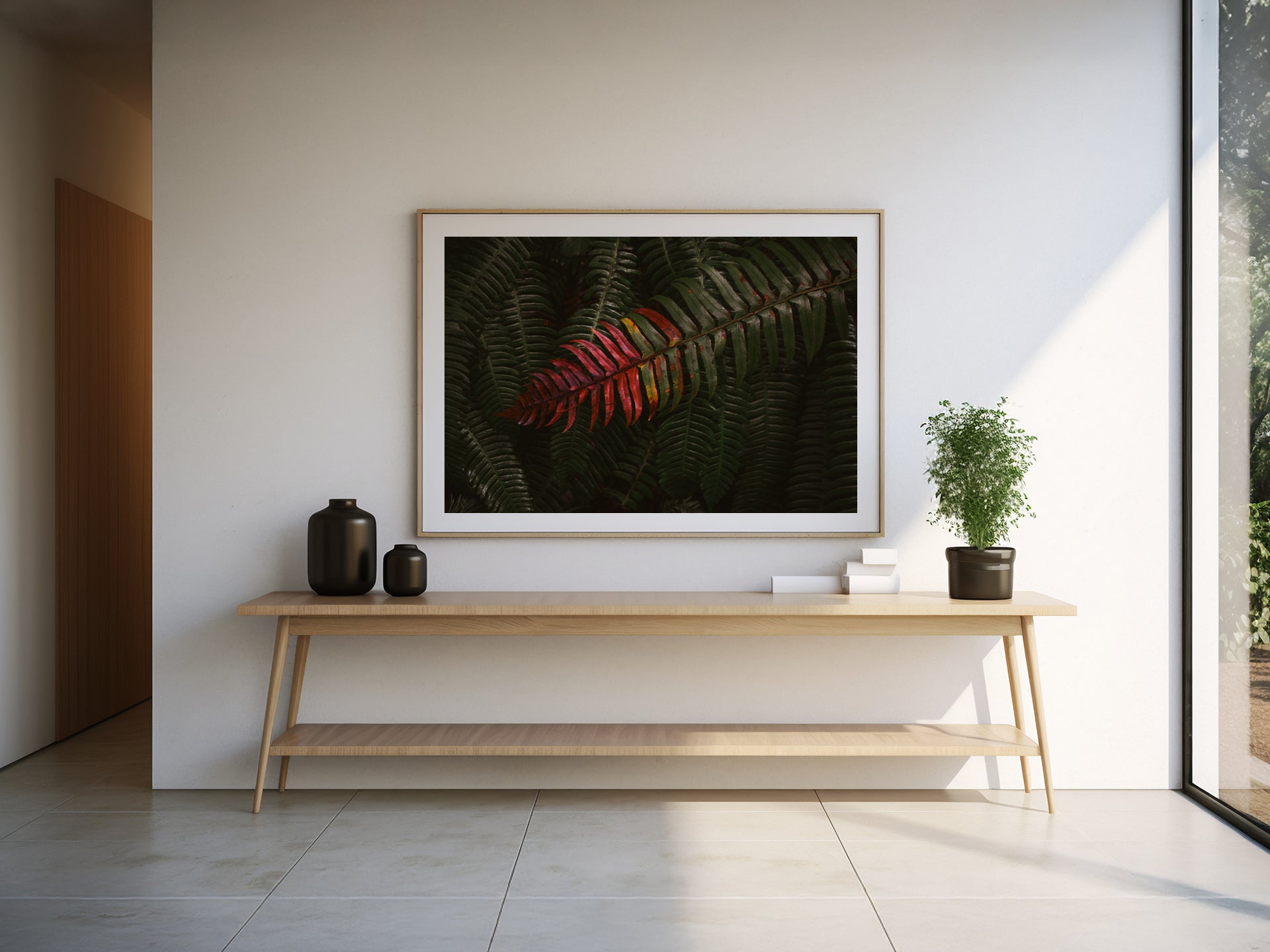 Frames: Available in black, white and natural wood finish. The images found on our product page are mockups. Each natural wood frame will differ slightly in the color and grain pattern. Each frame is handcrafted with a sheet of UV-blocking acrylic glass and comes fully assembled and ready to hang by wire on your wall.