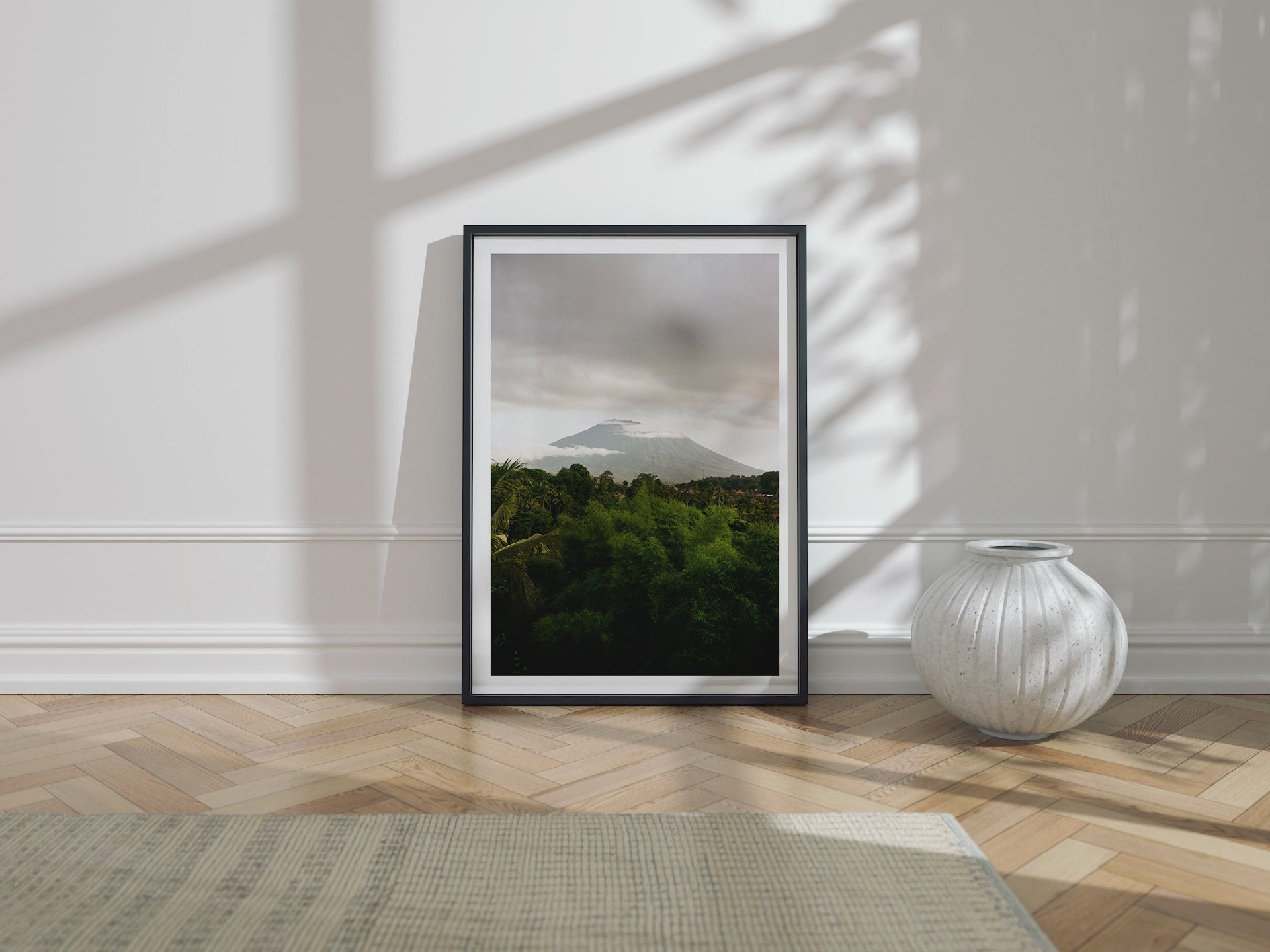 Frames: Available in black, white and natural wood finish. The images found on our product page are mockups. Each natural wood frame will differ slightly in the color and grain pattern. Each frame is handcrafted with a sheet of UV-blocking acrylic glass and comes fully assembled and ready to hang by wire on your wall.