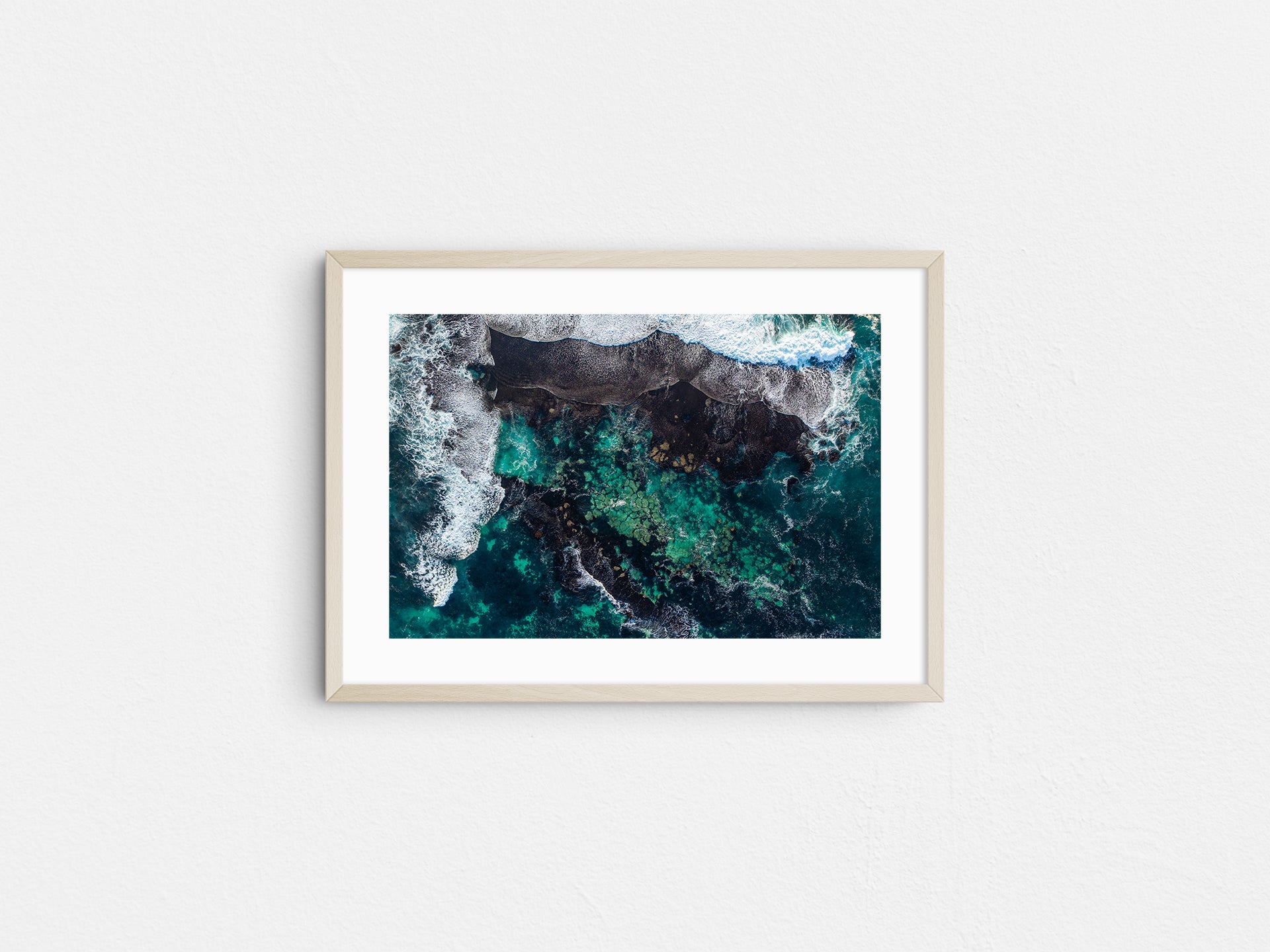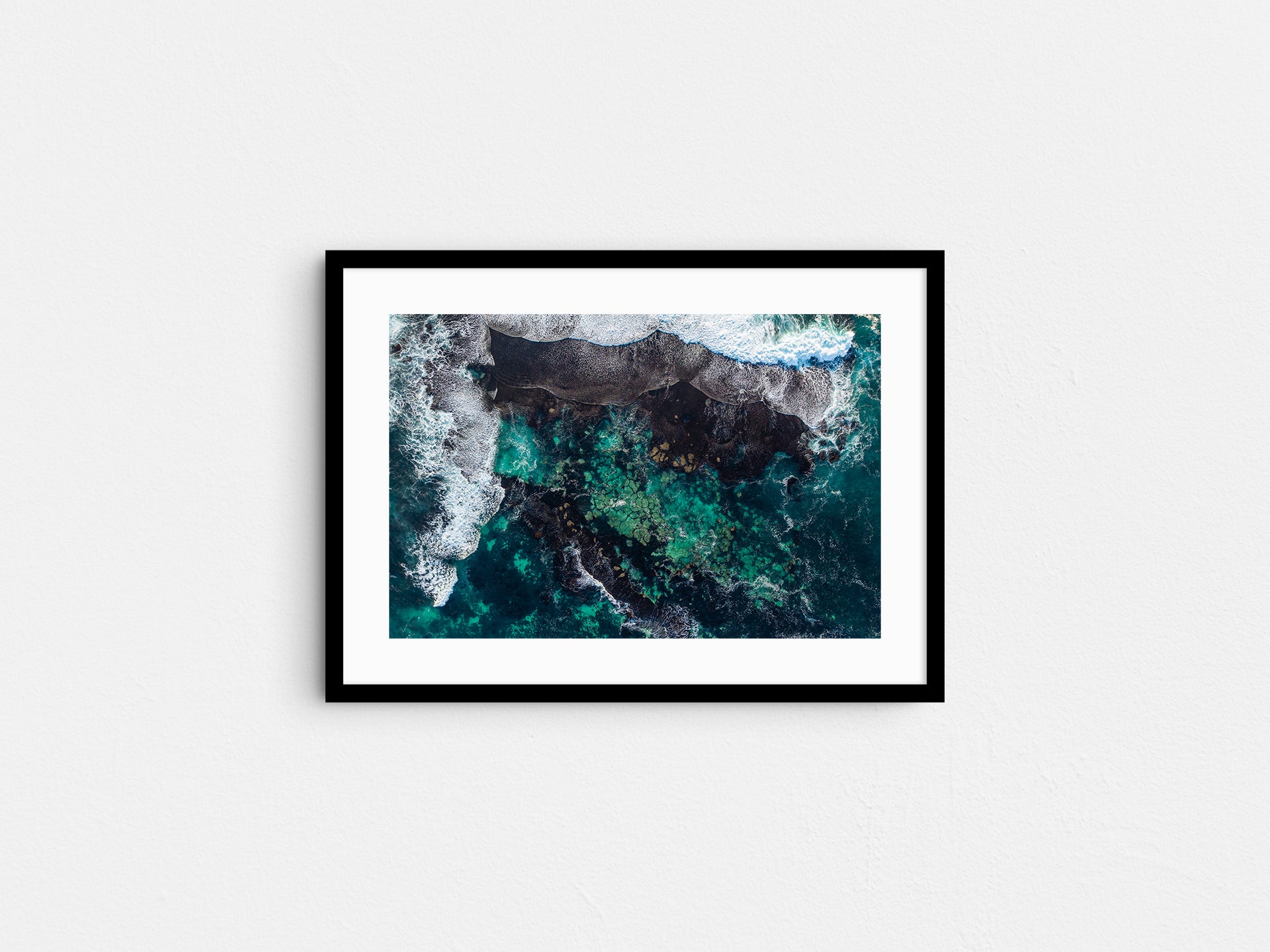 Frames: Available in black, white and natural wood finish. The images found on our product page are mockups. Each natural wood frame will differ slightly in the color and grain pattern. Each frame is handcrafted with a sheet of UV-blocking acrylic glass and comes fully assembled and ready to hang by wire on your wall.
