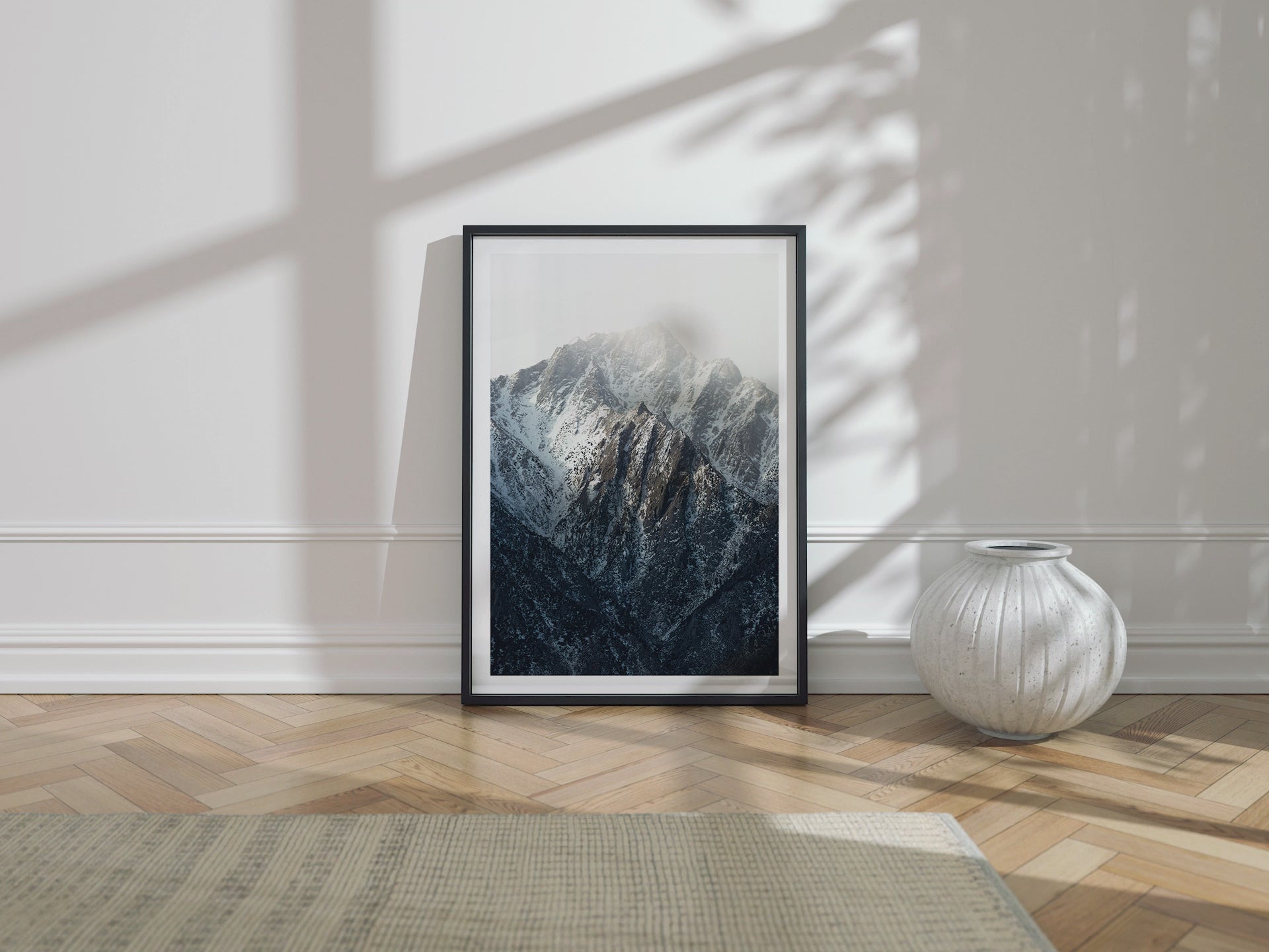 Frames: Available in black, white and natural wood finish. The images found on our product page are mockups. Each natural wood frame will differ slightly in the color and grain pattern. Each frame is handcrafted with a sheet of UV-blocking acrylic glass and comes fully assembled and ready to hang by wire on your wall.
